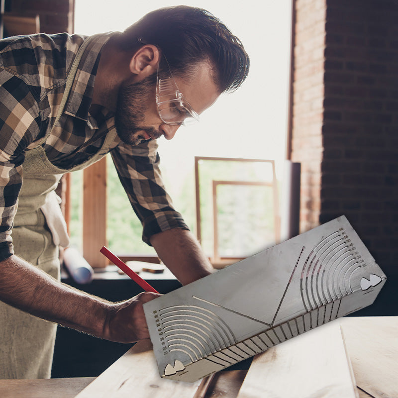 MEDICIÓN PRECISA: Esta regla de marcado cuenta con marcas claras y precisas con un diseño de ángulo de 90°, garantizando un ajuste perfecto para objetos cuadrados. Las líneas recortadas permiten dibujar fácilmente arcos o ángulos rectos, convirtiéndola en una herramienta esencial para trabajos de precisión.