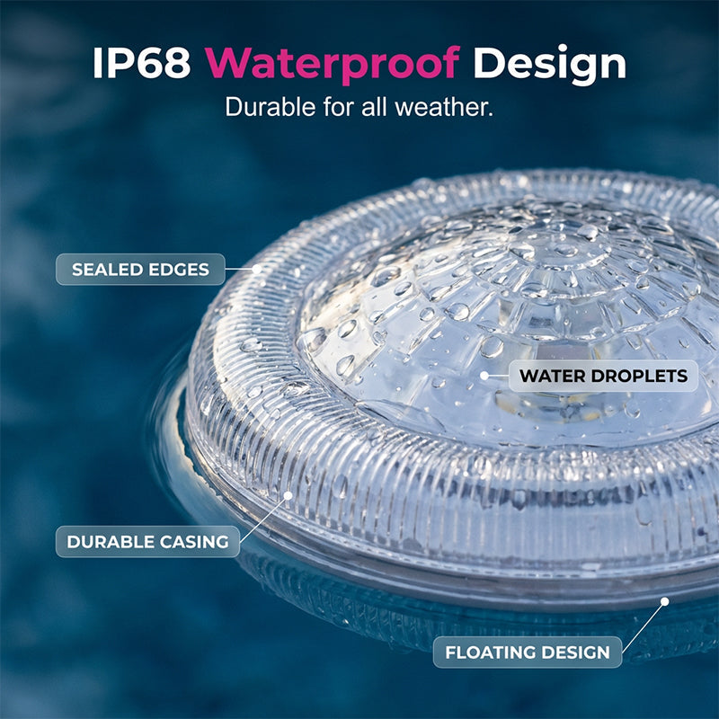IP68 WATERPROOF DESIGN - Crafted with premium waterproof materials, this floating light is designed to withstand continuous submersion and harsh outdoor weather conditions for long-lasting use.